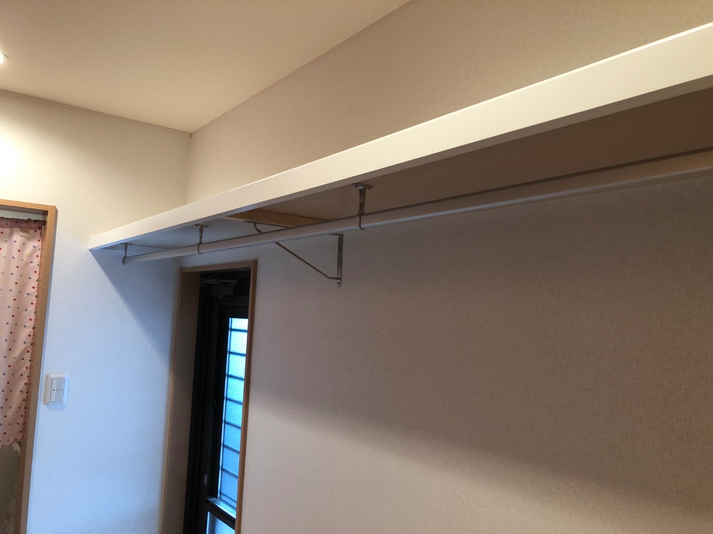 現状の収納棚の上部の空間を利用して枕棚とハンガーパイプを増設する事になりました。これで、収納力もアップしてスッキリすると思います。