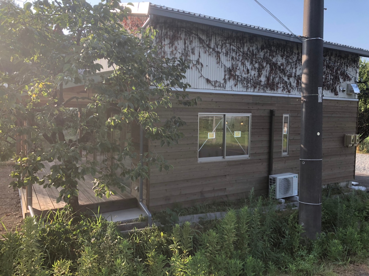 4年前に農機具小屋を喫茶店に改修する工事をさせて頂きましたが、今回は敷地内にある作業小屋の一部に雑貨などの物販コーナーを設ける為に建物外部の塗装改修と内部の片付けと塗装改修を行いました。外壁に穴が開いていたり扉のガラスが割れていたりしていましたが気になる所は直しながらの工事でした。