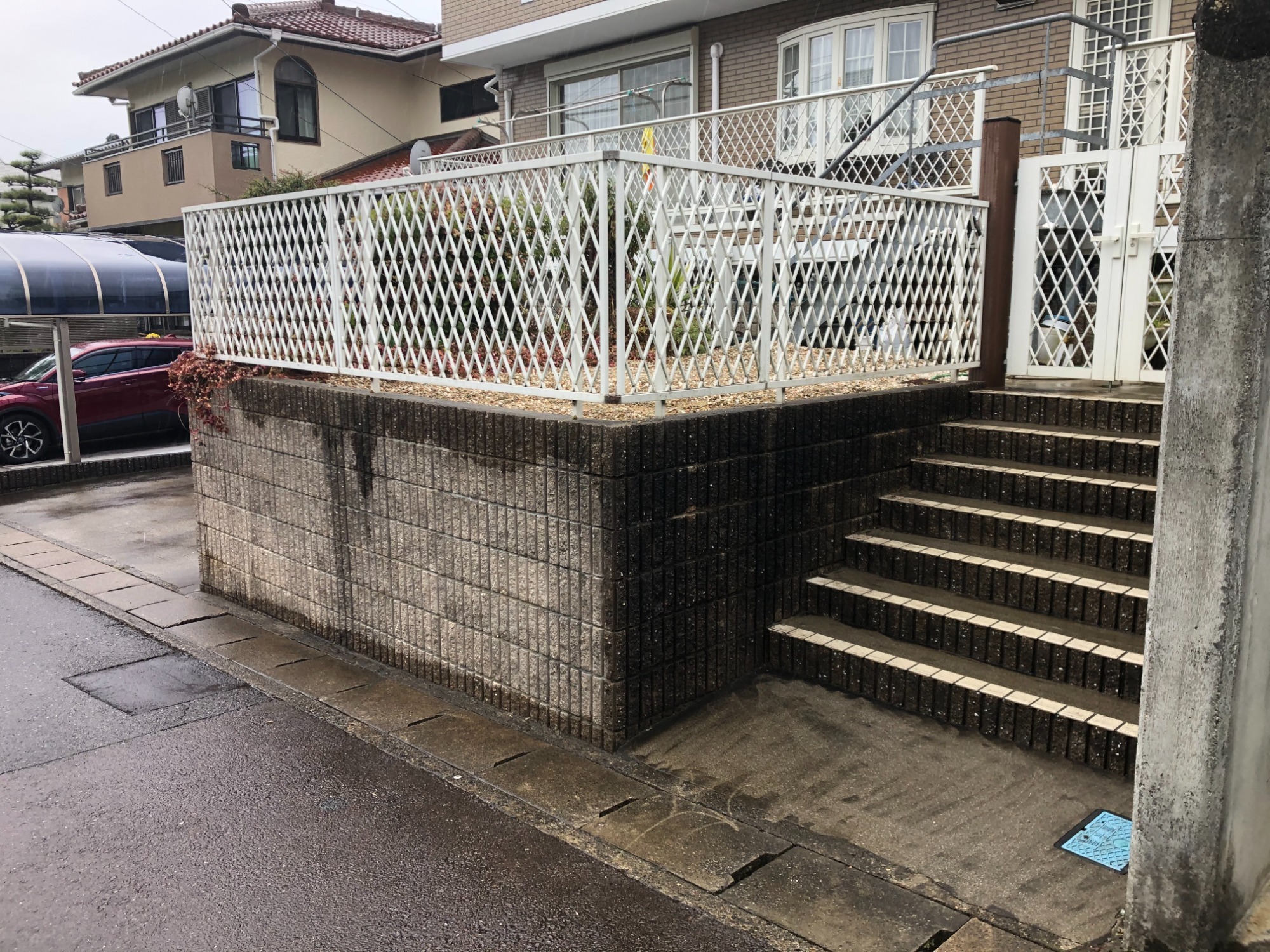 古くなって傾いた外周のコンクリートブロックを一部解体し、コンクリートブロックを積み直しさせて頂きました。